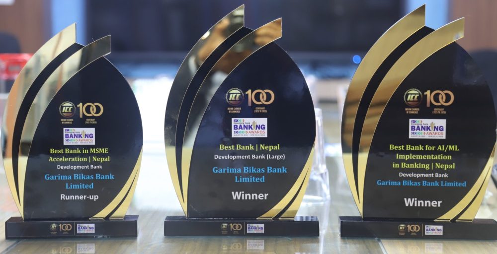 काठमाडौं । गरिमा विकास बैंक लिमिटेड इण्डियन च्याम्बर अफ कमर्शले बैंक तथा वित्तीय संस्थाहरुलाई प्रदान गर्ने दक्षिण एसियाकै प्रतिष्ठित अवार्ड इर्मजिङ एसिया बैंकिङ कनक्लेभ एण्ड अवार्डस्बाट सम्मानित भएको छ ।