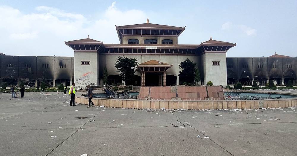 काठमाडौं । ‘जेन जी’ समूहको आन्दोलनका पहिलो निशानामा परेको नयाँ बानेश्वरस्थित सङ्घीय संसद् भवनभित्रको चौघेराबाहेक सम्पूर्ण संरचना ध्वस्त भएका छन् ।