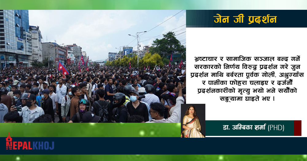 जसको प्रतिकार स्वरूप युवाहरूले भ्रष्टाचार र सामाजिक सञ्जाल बन्द गर्ने सरकारको निर्णय विरुद्ध प्रदर्शन गरे जुन प्रदर्शन माथि बर्बरता पूर्वक गोली, अश्रुग्याँस र पानीका फोहरा चलाइए र दर्जनौँ प्रदर्शनकारीको मृत्यु भयो भने सयौँको सङ्ख्यामा घाइते भए । यसको जवाफमा प्रदर्शनकारीहरू वाट ढुङ्गा मुढा, तोडफोडका साथै संसद्, सर्वोच्च अदालत, सिंहदरबार, प्रहरी स्टेसनहरू, भाटभटेनी, हिल्टन होटेल, राजनीतिज्ञहरूका घरहरू र जेलहरूमा समेत आगजनी भयो र यस क्रममा थुप्रै लुटपाटका घटना भए र यस वाट जन आक्रोश बढ्दै गयो।