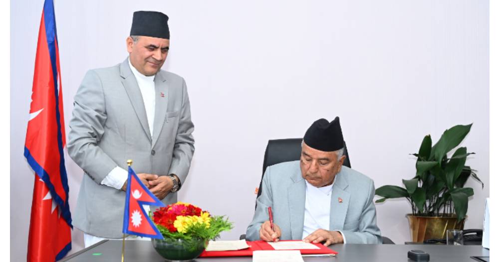उनले सङ्घीय संसद्को दुवै सदनको बैठकबाट पारित भई प्रमाणीकरणका लागि पेस हुन आएको उक्त विधेयक नेपालको संविधानबमोजिम आज प्रमाणीकरण गर्नुभएको राष्ट्रपति कार्यालयका प्रवक्ता प्रदीपकुमार कोइरालाद्वारा जारी विज्ञप्तिमा जनाइएको छ ।
