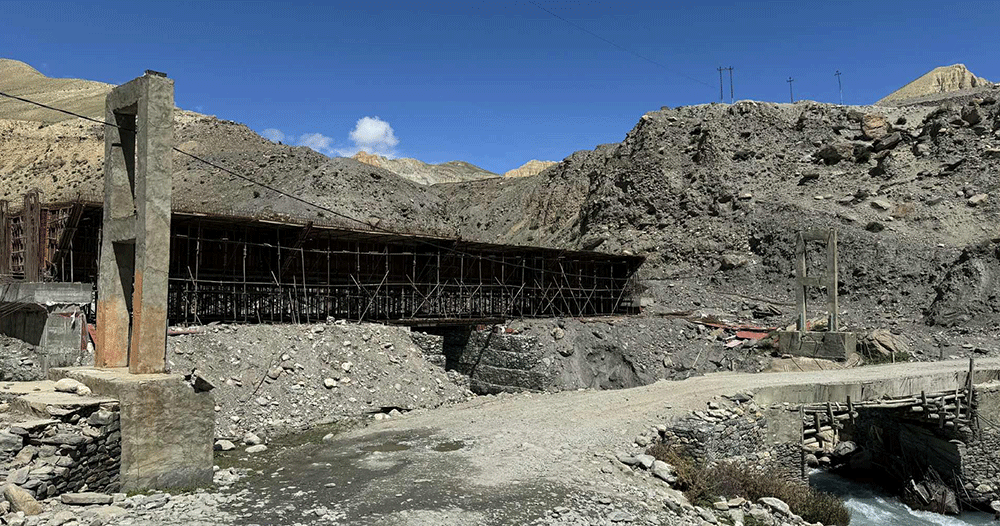 मुस्ताङ । उत्तर/दक्षिण व्यापारिक मार्ग विस्तारित आयोजनाअन्तर्गत कालीगण्डकी करिडोर (बेनी–जोमसोम–कोरला) सडक आयोजनामार्फत ठेक्का सम्झौता भएको मुस्ताङको लोघेकर दामोदरकुण्ड–२ घमी खोलामा निर्माणाधीन पक्की पुल अलपत्र परेको छ । यहाँको घमी खोलामा निर्माणाधीन पुल ठेक्का सम्झौता भएको सात वर्ष बितिसक्दासमेत सम्पन्न हुन सकेको छैन ।