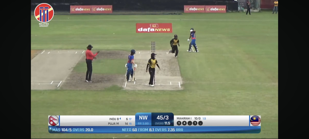 यो समाचार तयार पारिरहँदासम्म नेपालको लागि सुमन विष्टले दुई तथा रुविना क्षेत्रीले एक विकेट लिएका छन् । नेपाली महिला टोलीले आगामी जनवरीमा यहाँ आयोजना हुने टी–२० विश्वकपको ग्लोबल छनोट खेल्ने छ । सोही प्रतियोगिताको तयारीस्वरुप नेपाल अहिले मलेसियामा प्रतिस्पर्धा गरिरहेको छ ।