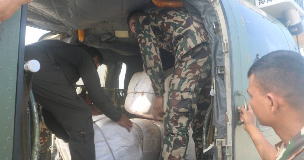 कोशी प्रदेशको आन्तरिक मामिला तथा कानुन मन्त्रालयले नेपाली सेनाको हेलिकोप्टरमार्फत आज राहत सामग्री त्यसतर्फ पठाएको सो मन्त्रालयका सचिव रामप्रसाद आचार्यले जानकारी दिए । स्थलमार्गबाट राहत पठाउन नसकिएपछि हेलिकोप्टरमार्फत उक्त सामग्री पठाएको उनले बताए ।