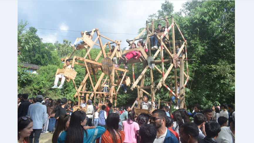 सरायको रौनकसँगै दसैँ मेलामा काठेपिङ चढ्नेको घुइँचो