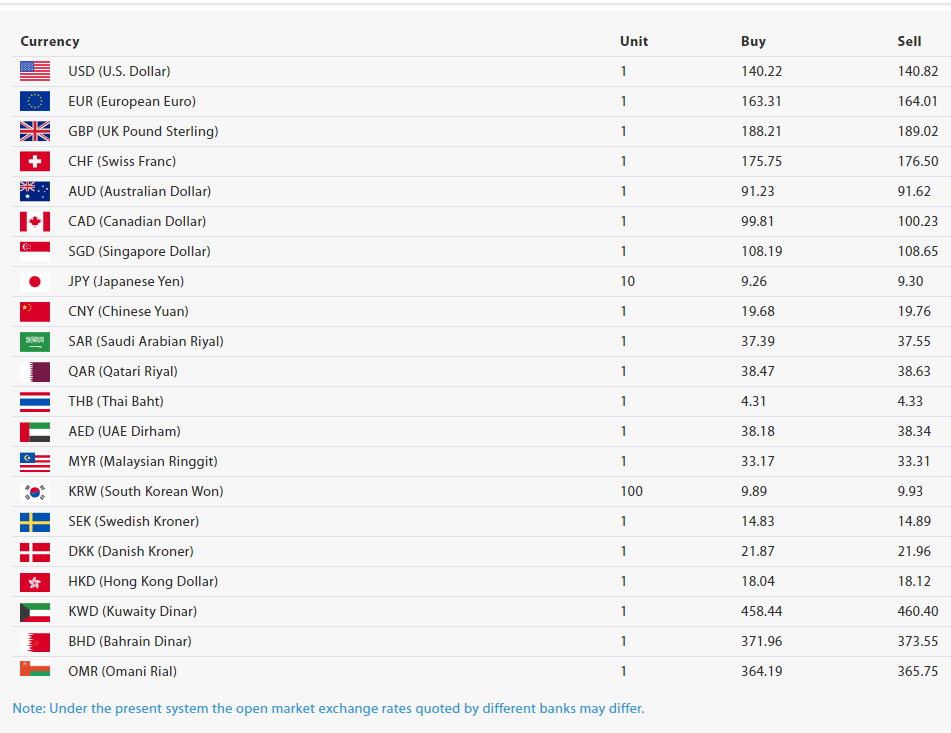 काठमाडौं । नेपाल राष्ट्र बैङ्कले शुक्रबार (आज) का लागि विदेशी मुद्राको विनिमय दर निर्धारण गरेको छ । शुक्रबारका लागि अमेरिकी डलर एकको खरिददर १४० रुपैयाँ २२ पैसा र बिक्रीदर १४० रुपैयाँ ८२ पैसा निर्धारण गरिएको छ ।