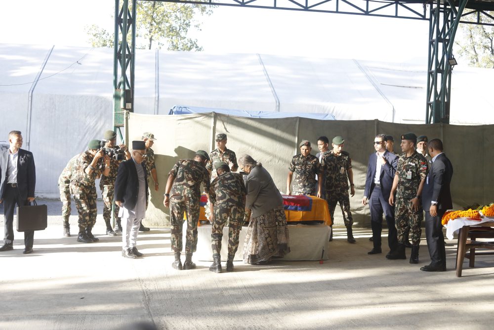 त्रिभुवन अन्तरराष्ट्रिय विमानस्थलमा आयोजित शोकसभामा प्रधानमन्त्री कार्कीले जोशीको शव नेपाल ल्याएसँगै विगत दुई वर्षदेखि जोशीलाई खोजिरहेका तीन करोड नेपालीका आँखा रसाएका बताए । उनले विपिनलाई सकुशल पाउने नेपालीको विश्वास आज निराशामा परिणत भएको उल्लेख गरे ।