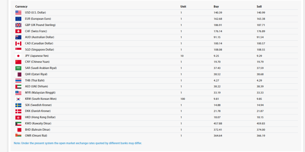 केन्द्रीय बैंकका अनुसार जापानी येन १० को खरिददर नौ रुपैयाँ २५ पैसा र बिक्रीदर नौ रुपैयाँ २९ पैसा, चिनियाँ युआन एकको खरिददर १९ रुपैयाँ ७० पैसा र बिक्रीदर १९ रुपैयाँ ७९ पैसा, साउदी अरेबियन रियाल एकको खरिददर ३७ रुपैयाँ ४३ पैसा र बिक्रीदर ३७ रुपैयाँ ५९ पैसा, कतारी रियाल एकको खरिददर ३८ रुपैयाँ ५२ पैसा र बिक्रीदर ३८ रुपैयाँ ६८ पैसा कायम भएको छ ।