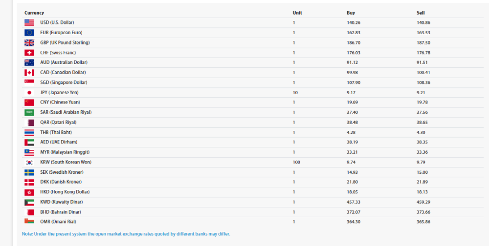 राष्ट्र बैंकले हङकङ डलर एकको खरिददर १८ रुपैयाँ ०५ पैसा र बिक्रीदर १८ रुपैयाँ १३ पैसा, कुवेती दिनार एकको खरिददर ४५७ रुपैयाँ ३३ पैसा र बिक्रीदर ४५९ रुपैयाँ २९ पैसा, बहराइन दिनार एकको खरिददर ३७२ रुपैयाँ ०७ पैसा र बिक्रीदर ३७३ रुपैयाँ ६६ पैसा , ओमनी रियाल एकको खरिददर ३६४ रुपैयाँ ३० पैसा र बिक्रीदर ३६५ रुपैयाँ ८६ पैसा रहेको छ । भारतीय रुपैयाँ एक सयको खरिददर १६० रुपैयाँ र बिक्रीदर १६० रुपैयाँ १५ पैसा तोकेको छ ।