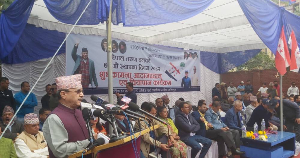नेपाल तरुण दलको ७३औँ स्थापना दिवसका अवसरमा नेपाली कांग्रेसको केन्द्रीय कार्यालय सानेपामा आज आयोजित शुभकामना आदानप्रदान एवम् चियापान कार्यक्रममा उनले नेपाल इतिहासकै प्रतिकूल अवस्थामा उभिएको र कांग्रेस पार्टीसमेत प्रतिकूल अवस्थामा रहेको उल्लेख गर्दै देश जोगाउन सङ्कल्पसहित अगाडि बढ्न आग्रह गरे ।