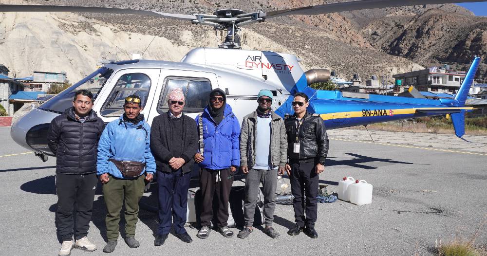 मुस्ताङ । मुस्ताङ र डोल्पाको सिमाना छार्का भेरोलको हिउँमा फसेका दुई जना नेपाली पर्यटकको आज बिहान हेलिकप्टरमार्फत उद्धार गरिएको छ । जिल्ला प्रशासन कार्यालय मुस्ताङको समन्वयमा इन्द्रबक्स गणको नेपाली सेनाको सहयोगमा एयर डाइनोष्टिक हेलिकप्टरमार्फत सकुशल उद्धार गरिएको हो ।