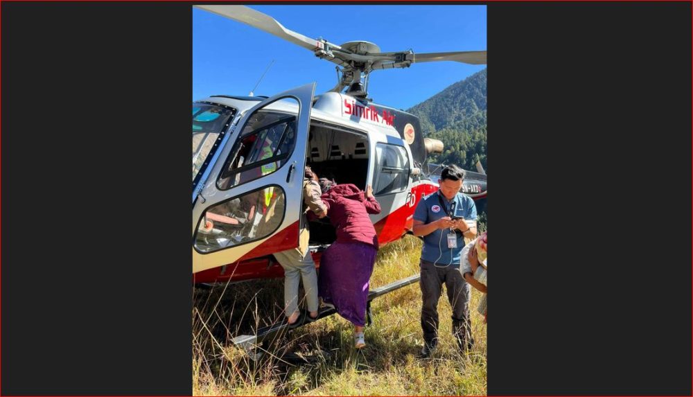 गण्डकी प्रदेशको जोखिममा परेका सुत्केरी तथा गर्भवती महिलाको हवाई उद्धार कार्यक्रमअन्तर्गत उद्धार गरिएको स्वास्थ्य शाखा प्रमुख गुरुङको भनाइ छ ।