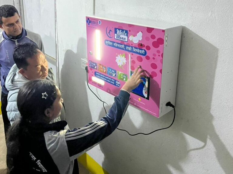 भोजपुर । भोजपुरको रामप्रसाद राई गाउँपालिकाले छात्राहरुको स्वास्थ्य र सुविधालाई लक्षित गर्दै विद्यालयमा स्वचलित ‘सेनेटरी प्याड’ वितरण मेसिन जडान गर्न थालेको छ । महिनावारीको समयमा छात्रालाई सहजता र आत्मविश्वासका साथ विद्यालय आउन प्रोत्साहन गर्ने उद्देश्यले मेसिन जडान गरिएको हो ।