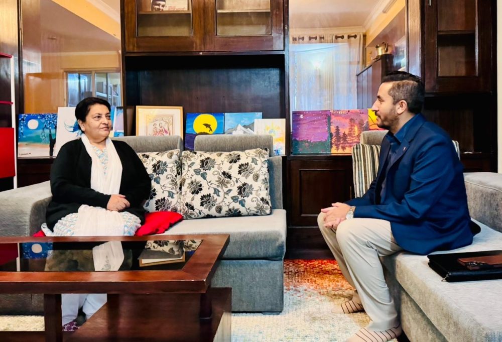 सञ्चारमन्त्री खरेल र पूर्वराष्ट्रपति भण्डारीबीच भेटवार्ता