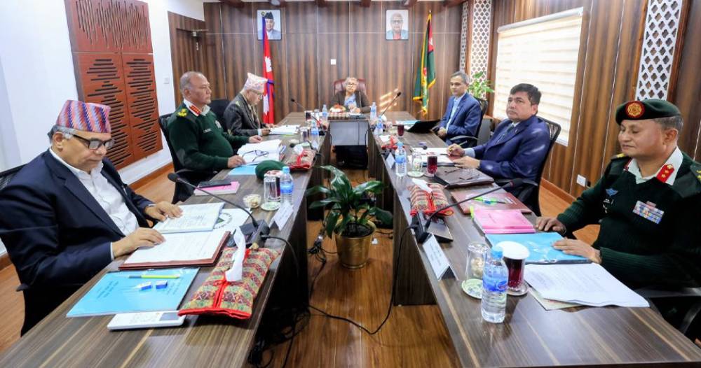 साथै राष्ट्रिय सुरक्षा परिषद्को आठौँ वार्षिक प्रतिवेदन आर्थिक वर्ष २०८१/८२ को मस्यौदामाथि छलफल भएको थियो । उक्त मस्यौदामा आवश्यक संशोधनसहित स्वीकृति गरी नेपालको संविधानको धारा २६६ को उपधारा (३) बमोजिम राष्ट्रपतिसमक्ष पेस गर्नेसमेत निर्णय भएको जनाइएको छ ।