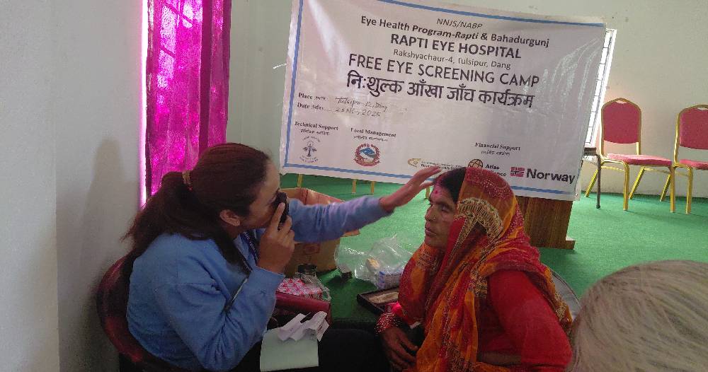 त्यस्तै तुलसीपुर १२ कै ८२ वर्षीय चेतनाथ पोख्रेलको पनि आँखा परीक्षण गर्दा मोतिविन्दु देखियो । नेपाल नेत्रज्योति सङ्घद्वारा सञ्चालित राप्ती आँखा अस्पतालले एनएबिपी नर्वेको आर्थिक एवं प्राविधिक सहयोग आयोजित निःशुल्क आँखा जाँच शिविर आयोजना गरिएको थियो ।