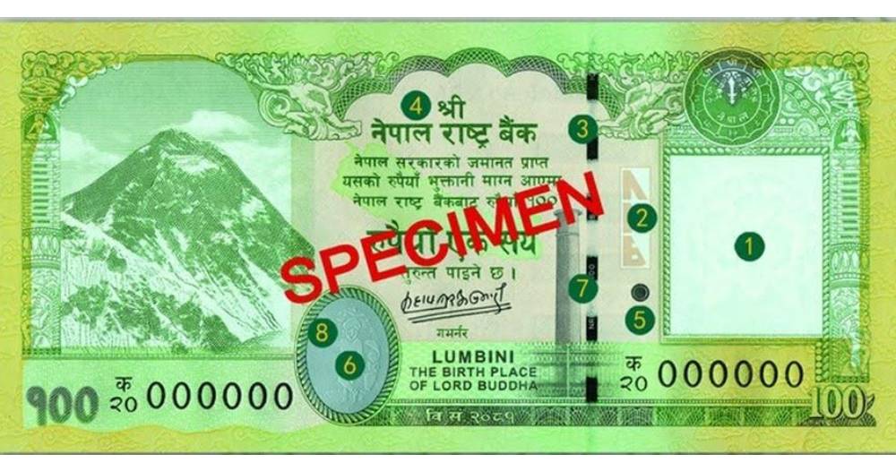 चुच्चे नक्सा भएको एक सय रुपैयाँको नोट चलनचल्तीमा