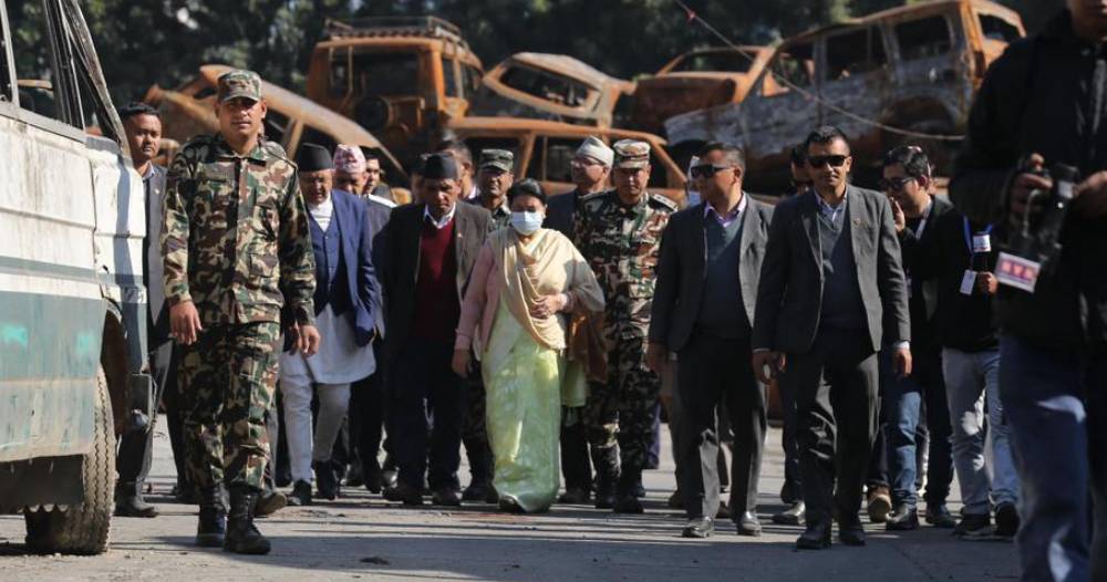 पूर्वराष्ट्रपति भण्डारीले गरिन् आगजनी र तोडफोडबाट क्षतिग्रस्त सङ्घीय संसद् भवनको अवलोकन