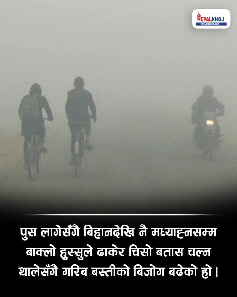 यस्तै, एकाबिहानैको समयका सार्वजनिक सडक यातायातका साधनलाई पनि हुस्सु छिचोल्न नसक्दा ठाउँ–ठाउँमा रोकिनुपरेको चालक बताउँछन् । बाक्लो हुस्सुसँगैको चिसो हावा बहने क्रमले बिहान बेलुका जाडो निकै छिप्पिएको छ ।