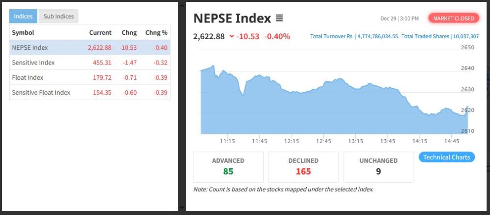 नेप्से १० अंकले घट्दा चार अर्ब ७७ करोडको सेयर किनबेच