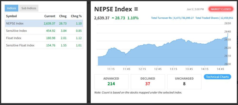 नेप्से २८ अंकले बढ्दा छ अर्ब ४७ करोडको सेयर किनबेच