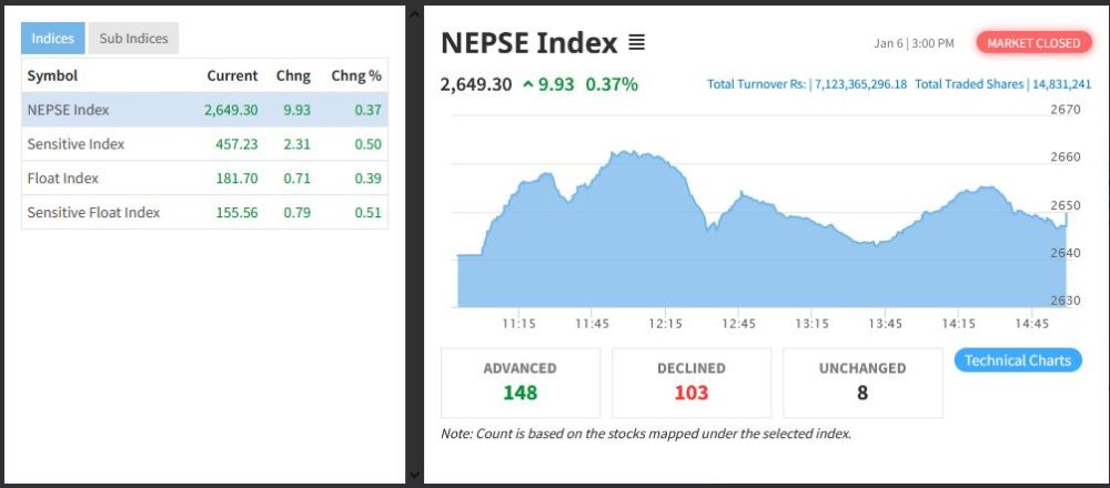 यि बाहेक बाँकी समुहहरुको सुचक भने बढेका छन् । जसमध्ये वाणिज्य बैंक समूहको सूचक पाँच दशमलव ९९ अंकले बढेर १३ सय ७५ दशमलव १४ अंकमा चढेकोमा बिकास बैंक समुहको सुचक पनि ४४ दशमलव ४१ अंकले बढेर पाँच हजार छ सय १२ दशमलव ३७ अंकमा पुगेको छ ।
