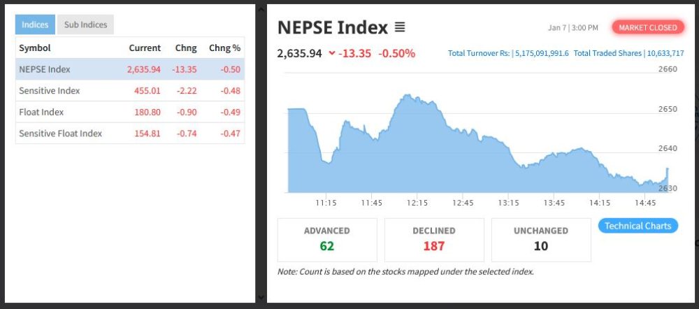 नेप्सेमा सूचक तथा कारोबार रकम दुवै घट्यो