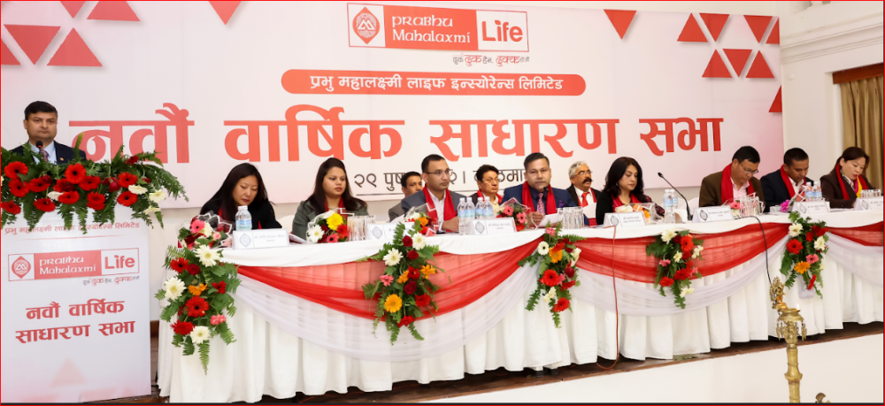 काठमाडौं । प्रभु महालक्ष्मी लाइफ इन्स्योरेन्स लिमिटेडको नवौं वार्षिक साधारणसभा मंगलबार काठमाडौंमा सम्पन्न भएको छ । प्रभु महालक्ष्मी लाइफ इन्स्योरेन्स लिमिटेडको सञ्चालक समितिका अध्यक्ष सम्झना अर्यालको अध्यक्षतामा साधारण सभा सञ्चालन भएको हो ।