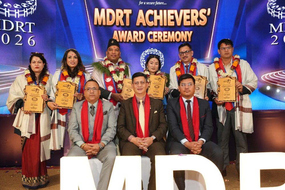 अभिकर्ताहरुको अन्तराष्ट्रिय फोरम एमडिआरटीले एमडिआरटी २०२६ का लागि तोकेको बीमाशुल्क संकलन गरी नेपालभरबाट टिओटीमा २ जना सिओटीमा ४ जना र एमडिआरटीमा ७७ जना गरी छनौट भएका ८३ जना अभिकर्ताहरुलाई भव्य समारोहका बिच सम्मान गरेको छ ।