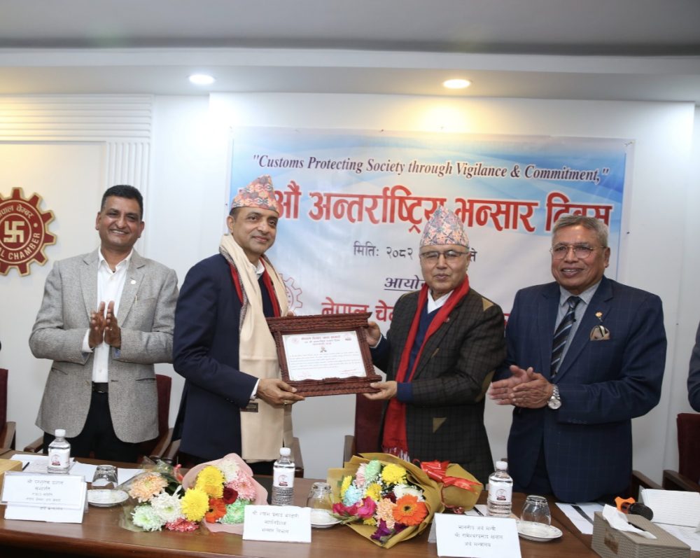काठमाडौं । नेपाल चेम्बर अफ कमर्सले ७४ औँ अन्तर्राष्ट्रिय भन्सार दिवस ““सतर्कता र प्रतिबद्धतामार्फत समाजको संरक्षण गर्ने भन्सार”” भन्ने नाराका साथ भव्य रूपमा मनाएको छ ।