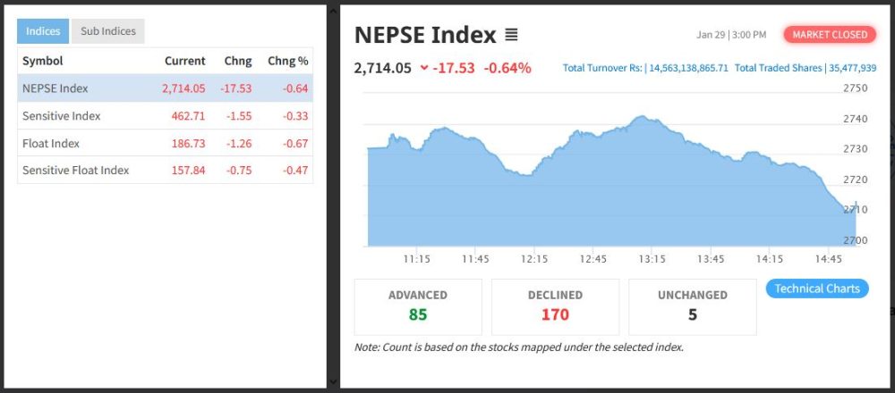 नेप्से १७ अंकले घट्दा १४ अर्ब ५६ करोडको सेयर किनबेच