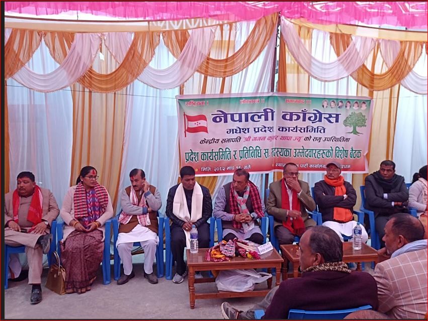 उनले मधेसका मुद्दा समाधानका लागि कांग्रेसले सशक्त भूमिका निर्वाह गर्ने बताए । बैठकमा मधेस प्रदेश कार्यसमितिका पदाधिकारी, केन्द्रीय सदस्य तथा प्रतिनिधिसभा सदस्य उम्मेदवारहरूको सहभागिता थियो ।