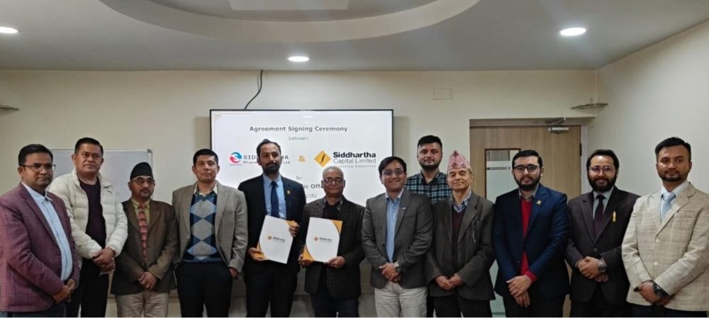यस सम्बन्धमा मंगलबार काठमाडौं नक्साल स्थित सिद्धार्थ क्यापिटल लिमिटेडको कार्यालयमा दुवै पक्षबीच औपचारिक सम्झौता सम्पन्न भएको हो । सम्झौतापत्रमा सिद्धार्थ फर्मास्युटीकल्स लिमिटेडका तर्फबाट अध्यक्ष डा. ऋषिराम शर्मा तथा सिद्धार्थ क्यापिटल लिमिटेडका तर्फबाट चिफ बिजनेश अफिसर रिकेश श्रेष्ठले हस्ताक्षर गरेका हुन् ।