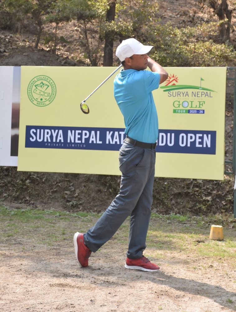 काठमाडौं । सूर्य नेपाल गल्फ टुर २०२५–२६ अन्तर्गतको चौथो प्रतियोगिता सूर्य नेपाल काठमाडौं ओपनको तेस्रो दिन भुवन नगरकोटी एक स्ट्रोकको अग्रता सहित शीर्षस्थानमा उक्लन सफल भएका छन् । ४–अन्डर ६४ सहित समग्रमा ६–अन्डर १ सय ९८ को स्कोरमा भुवन शीर्षस्थानमा उक्लिएका हुन्। उनले दिनेश प्रजापतिलाई एक स्ट्रोकले पछि पारे ।