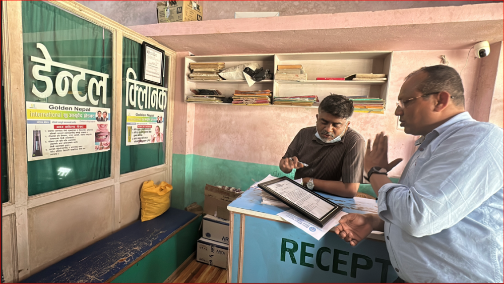 नेपाल मेडिकल काउन्सिलअन्तर्गतको व्यवसायिक आचरण तथा स्वास्थ्य समितिका संयोजक डा अजय कुमार साहको नेतृत्वमा खटिएको टोलीले लहान–३ स्थित अस्पताल चोक क्षेत्रमा सञ्चालित केही डेन्टल क्लिनिकहरूको निरीक्षण गरेको हो ।