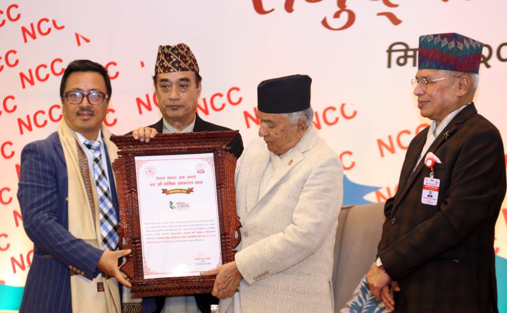 काठमाडौं । राष्ट्रपति रामचन्द्र पौडेलले नेपाल चेम्बर अफ कमर्सको ७५ औँ वार्षिक साधारण सभाको समुद्घाटन गरेका छन् । हीरक जयन्ती वर्षको अवसरमा आयोजित उक्त कार्यक्रममा आर्थिक तथा सामाजिक क्षेत्रमा उल्लेखनीय योगदान पु¥याउने ९ जना तथा संस्थालाई विभिन्न विधामा सम्मान गरिएको छ ।