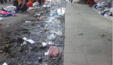 वनकालीमा सडकमाथि बगेको ढलले भक्तजनलाई सास्ती