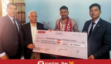 एभरेष्ट बैंकद्वारा रुकुमको यमुनानन्द नमुना माध्यामिक विद्यालयलाई आर्थिक सहयोग