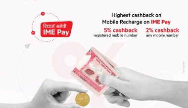 आइएमई पेले फेरि ल्यायो मोबाइल रिचार्जमा पाँच प्रतिशत क्यास ब्याक