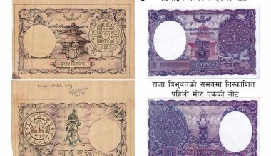 डिजाइन र निस्काशित पहिलो १ रुपैयाँको कागजी नोट