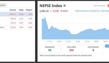 नेप्से झण्डै १४ अंकले घट्दा तीन अर्ब ५१ करोडको सेयर काराेबार
